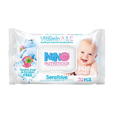 دستمال مرطوب کودک حاوی کالاندولا 70 برگي ميوه ای درب دار نینو