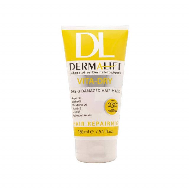 ماسک مو ویتا درای درمالیفت با تغذیه و آبرسانی موها، نرمی و لطافت را در آن ایجاد می کند. همچنین، گره های مو را باز کرده و شانه پذیری و حالت دهی موها را بهبود می بخشد. این ماسک مو تار های مو را استحکام بخشیده و مقاومت آن را در برابر وسایل حرارتی مانند اتو و سشوار افزایش می دهد. ماسک مو درمالیفت مدل Vita-Dry حاوی روغن آرگان، جوجوبا، ماکادمیا، کراتین هیدرولیز شده و ویتامین E است.